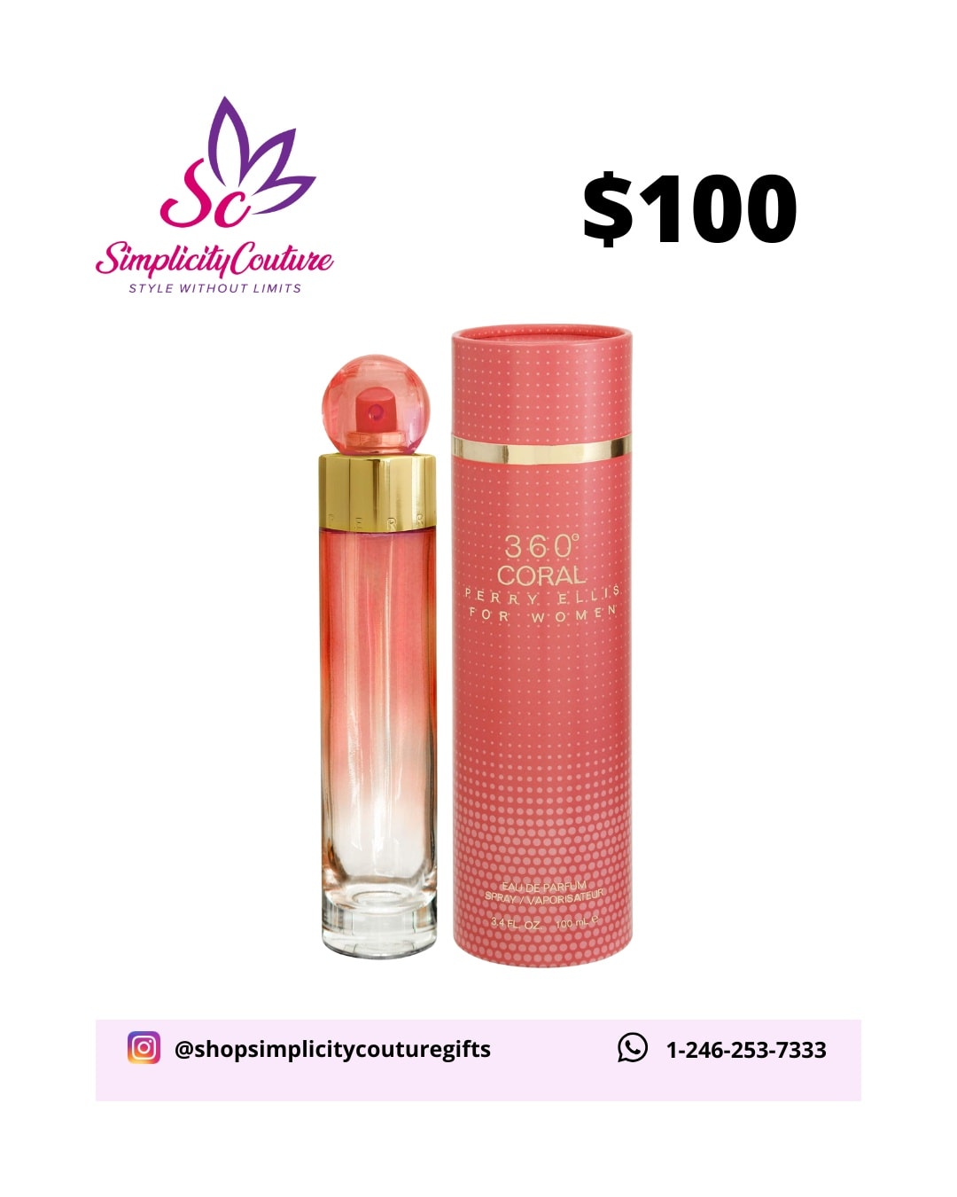 Perry Ellis 360 Coral for Women is a fresh, fruity-floral fragrance, perfect for sunny days. This sweet and vibrant scent, presented in a coral-hued bottle and matching box, is light enough for everyday wear. Available in a 3.4 fl oz / 100 ml Eau de Parfum spray.