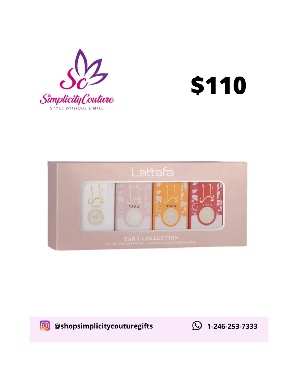 Discover the Lattafa Yara Collection with this beautiful gift set featuring four 5ml mini Eau de Parfum sprays. This set includes iconic Yara scents, offering a variety of sweet, creamy, fruity, soft floral, and gourmand fragrances perfect for travel, gifting, or trying your favorites.