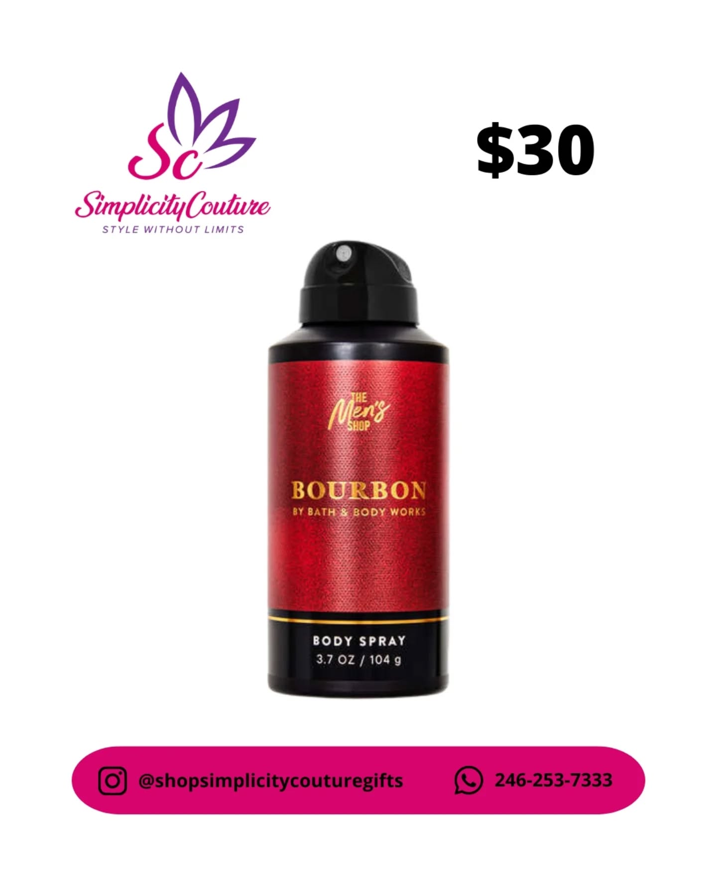 Experience the rich, masculine scent of Bath & Body Works Bourbon Body Spray. This 3.7 oz fragrance features smooth, warm notes for a clean and confident aroma that lasts throughout the day, perfect for everyday wear.